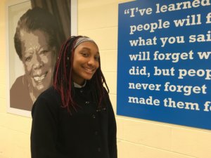 Our teachers said they were doing a Black History Month celebration. My art teacher asked if anyone wanted to perform, and I volunteered. It felt good because I was nervous, and then I did it and felt relieved and proud.