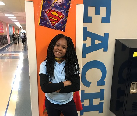 I’m in fourth grade. I like to perform. I like to be adventurous—I ride my bike down the street in my neighborhood and go to the park to climb trees. My favorite class is close reading, and my favorite teachers are Ms. Hall and Ms. Sanders. I like close reading because it’s literature, and I love to read. My favorite genre is mystery. Right now, I’m reading "The Hate U Give." My mom said I can watch the movie after I read the book.